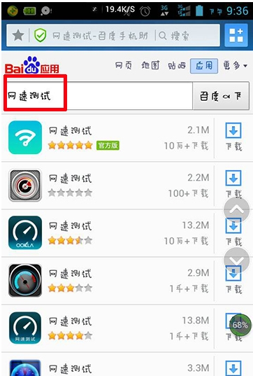 1、到网上下载一个专用测速工具,比如搜索“网速测试”,便可出现网速测试软件,以供下载