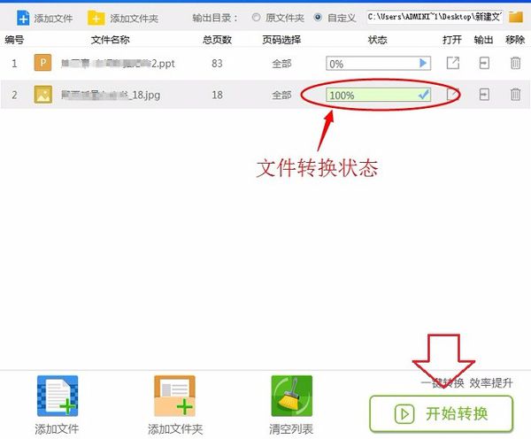 3、最后设置文件的输出保存位置,点开始转换就行了,等文档转换完成后就能在设置的文件夹里面找到转换好的图片了。