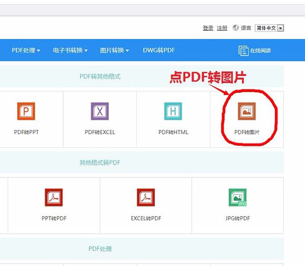 1、进入转换主页后找到pdf转成图片的选项,点击进入到该项转换的操作页面。