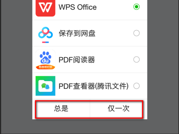4.选择完毕后,在该页面中找到总是或者仅一次选项,选择点击一种选项进入到文档页面中。