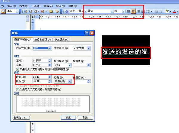 word中黑体16磅加粗居中,单倍行距,段前24磅,段后18磅怎么设置