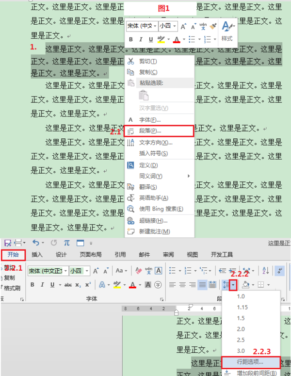 1. 选中文本,进入“段落对话框”(图1):