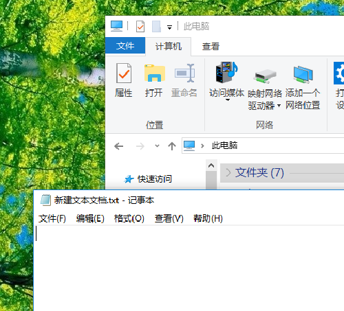 2、新建文本文档,同样保持窗口在桌面上。