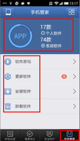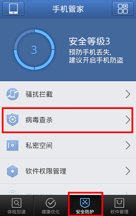 管家除了在提供病毒查杀和软件管理外,骚扰拦截、软件权限管理、手机防盗等也是管家提供的基础安全防护功能,另外还能主动满足您流量监控、空间清理、体检加速、软件搬家等个性化的手机管理需求。是众多用户推荐、并使用的手机杀毒管理软件。腾讯手机管家诚邀您进行体验。