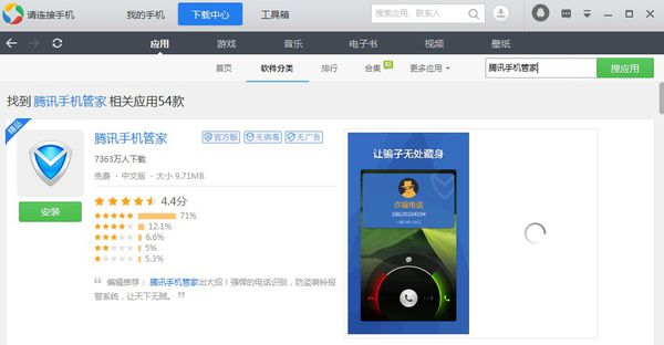 下载方式 打开电脑管家进入应用宝 搜索手机管家 点击下载即可。