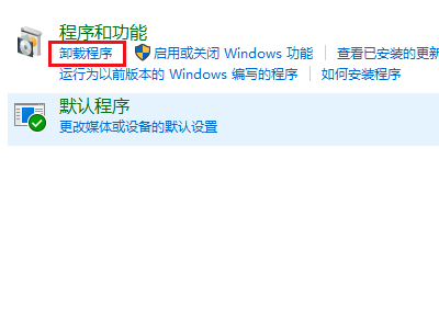 打开“控制面板”后,在“程序”一栏里,点击“卸载程序”;
