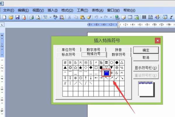 五、然后,在“特殊符号”中找到“双波浪线”,点击打开。
