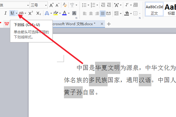 利用下划线功能实现波浪线的插入,具体步骤如下: