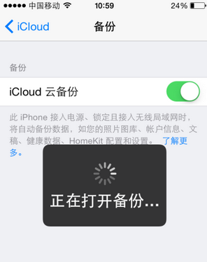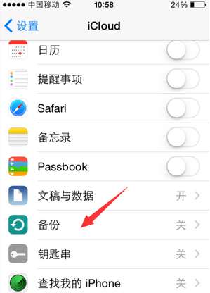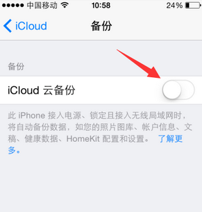 4.最后推开关闭的iCloud云备份,就可以将你短信备份到苹果iCloud云上面。
