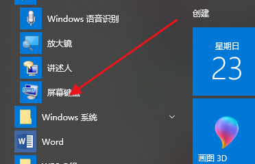 4、然后从Windows轻松访问里找到屏幕键盘,点击进去;