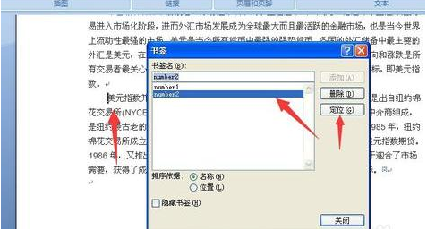 步骤六:书签添加完毕之后,如果要想定位到书签的位置,依旧到书签界面中,点击要查看的书签名称,然后点击定位按钮,就能到相应的word位置