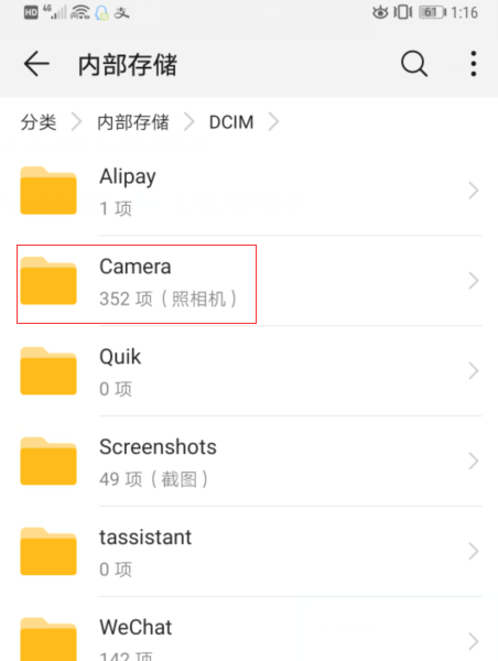 4.进入DCIM文件夹后再次进入Camera文件夹