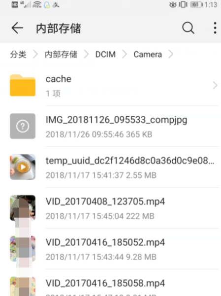 5.进入Camera文件夹后,你就可以看到手机拍摄的视频