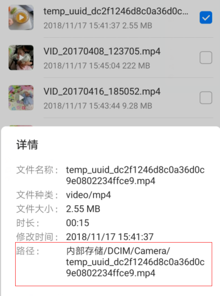 7.这样你就知道了你拍摄视频的文件的全路径了