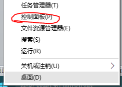 1、右击开始菜单打开控制面板。