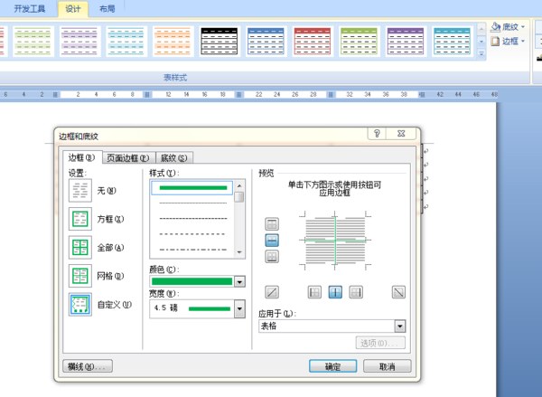 选中表格,如图点“设计”→“边框”→“边框与底纹