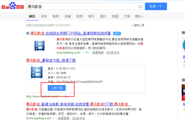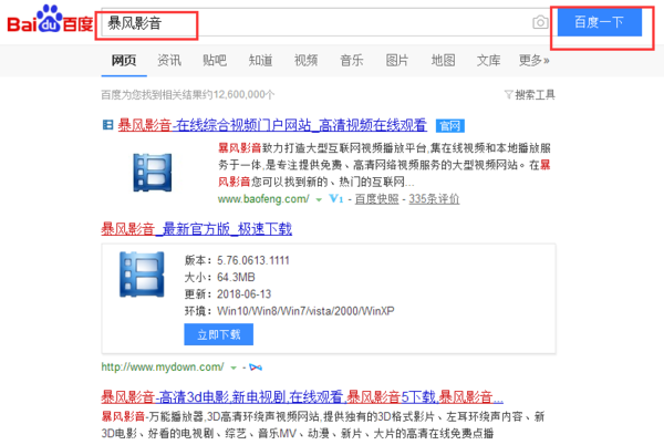 1、打开一个浏览器,在百度中输入“暴风影音”,单击“百度一下”