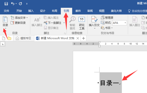 在菜单栏上找到“引用”,在目录模块下找到目录,点击下拉菜单,选择“插入目录”。
