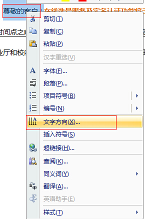 选中要设置文字方向的区域——右击——文字方向,如图: