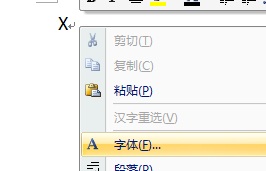 4、比如:要输入X2的方程,2为下标,也是先输入X,鼠标右键选择字体。