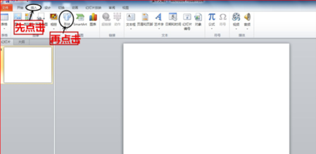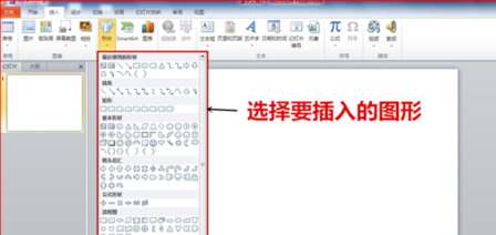 打开Microsoft PowerPoint 2010,点击“插入”在点击“形状”。