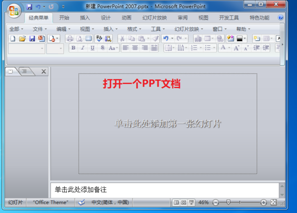1、在电脑上打开一个PPT文件,新建一个幻灯片。