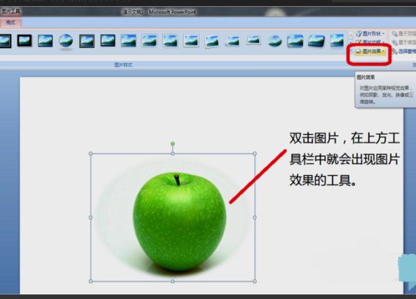 1.点击需要加阴影的图片,点击图片工具选项卡并进行设置。