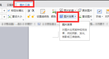 2.插入成功后,点击该图片,文档上方会有对该图片的一些功能设置,在图片工具中点击图片效果。