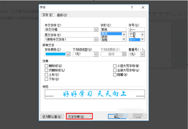 4、在弹出的字体设置的窗口中选择下方的“文字效果”。