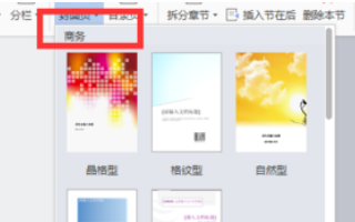 3、点击后,你可以看到各种类型的封面,比如商务类型,适合公司合同、文档;简历类型,适合找工作投简历的朋友等等。每个类型的封面里还细分,各个风格类型供你选择。