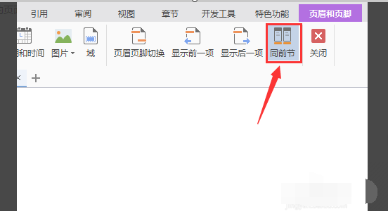 5、在上方的标题栏中有一选项“同前节”处于选中状态点击取消该状态。