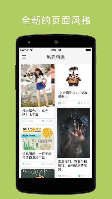 在这里,我们每天为你推荐最热门的果壳文章,让你随时随地获取新鲜、有价值的生活知识和科技资讯。 除此之外,你还可以看到由果壳编辑精心挑选的来自壹读、VICE、微在等数十家媒体口味不同但调性相似的精彩内容。