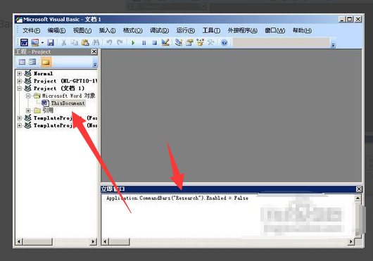 4、按Ctrl+G,在立即窗口中键入以下内容,然后按回车;Application.CommandBars("Research").Enabled = False