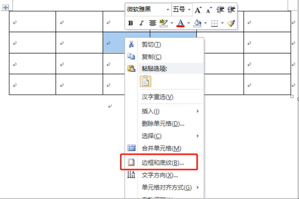 2、然后点击鼠标右键,在弹出框选择“边框和底纹”;
