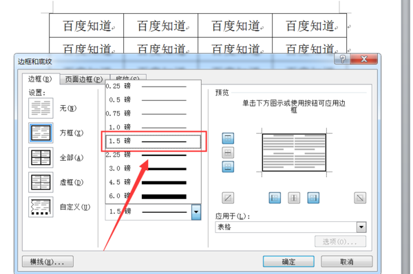 4、就会出现很多宽度供选择,选择你想要加粗的磅数,然后点击右边的确定;