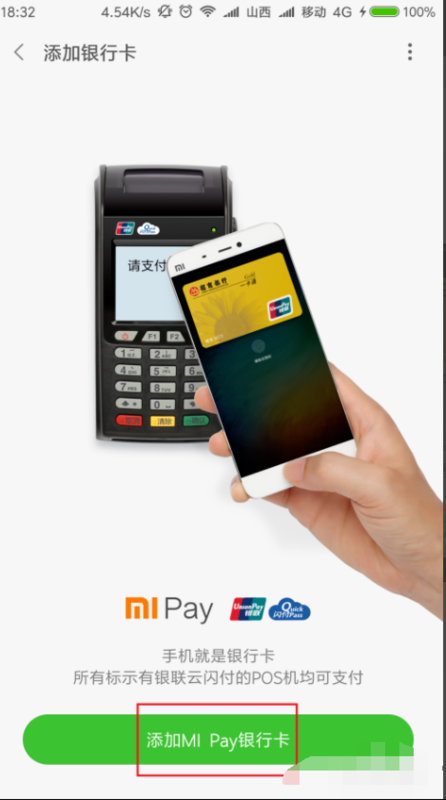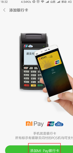 使用场景:MI Pay 添加银行卡成功后,标识有银联“云闪付”的POS机均可使用