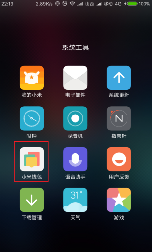 1、在手机桌面上找到“小米钱包”选项,点击打开。
