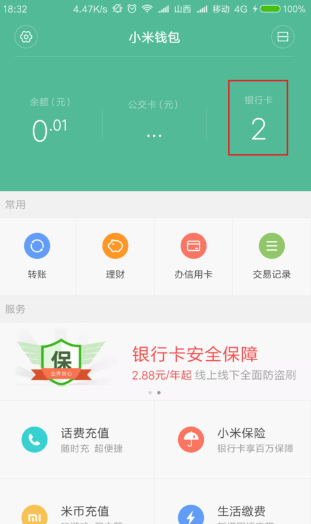 1.首先,请大家打开MIUI系统中的小米钱包应用,同时开启NFC读卡功能。
