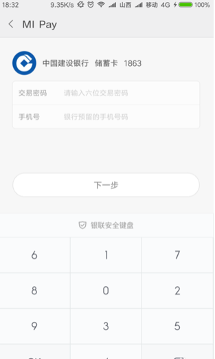 10.在笔者开通MI Pay功能的过程中,遭遇到了很多失败现象,比如识别银行卡号之后,一直没法进行下一步;填写支付密码和预留手机号码之后,无法获取银行的短信等等,而且开通MI Pay服务的过程中等待的时间比较长,所以建议大家在开通的过程中,如果失败了你就多试几次,并耐心等待。