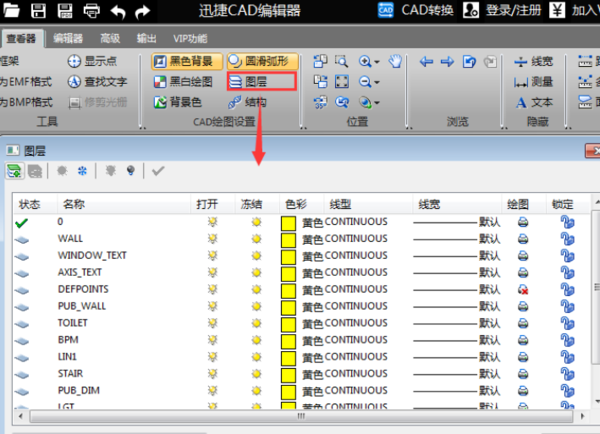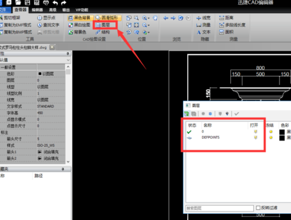 4、然后在CAD绘图设置功能区中选择图层选项,打开图层设置窗口。
