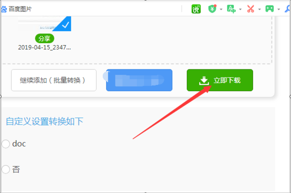 5、选择完成后会进行自动转换,等待转换完成后点击页面省的立即下载选项下载转换好的Word文档就可以将图片转换为可以编辑的Word文档。