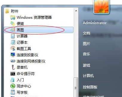 ②打开系统“开始”-->所以程序-->附件-->画图;