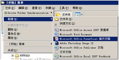 点“开始”“资源管理器”“文件”“新建”一般就能找到它,就是下面蓝条上的后面有演示文稿的:
