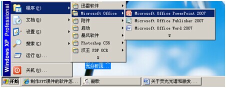 当然,在“开始”“程序”Microsoft office 里也可以找到它,不过没有“演示文稿”四个字在后面,点了它就能打开一个空白的PPT文档,然后只要在上面新建幻灯片、输入文字、添加图片、保存就行了。