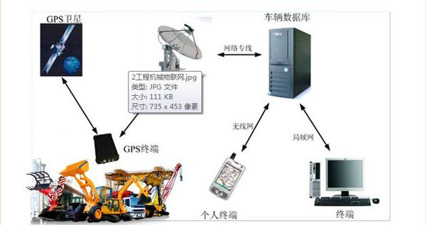 “工程机械物联网”是借助全球定位系统(GPS)、手机通讯网、互联网,实现了工程机械智能化识别、定位、跟踪、监控和管理,使工程机械、操作手、技术服务工程师、代理店、制造厂之间异地、远程、动态、全天候“物物相连、人人相连、物人相联”。