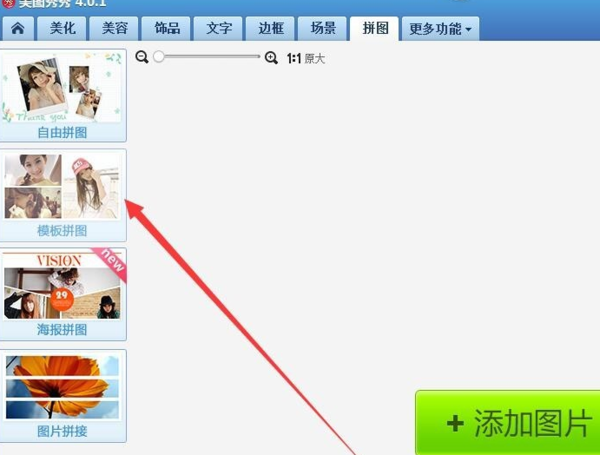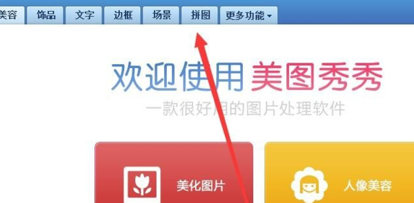 1、首先打开美图秀秀的软件,在最上方,点击拼图选项。