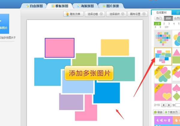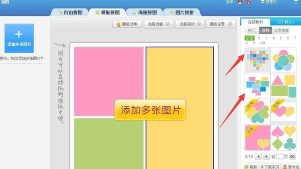 2、进入拼图之后,点击左侧的模板拼图,里面有我们需要的心形拼图。