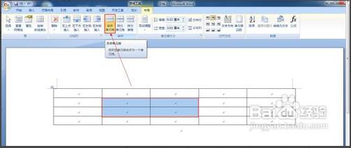 4:如果想要合并当前表格中某些单元格,只需要将光标放在想要插入行或列的位置,然后点击“布局”选项卡中的“合并单元格即可。
