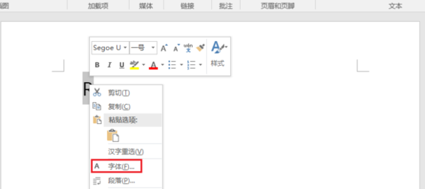 2、选中R,单击右键,在弹出的列表中选择“字体”选项