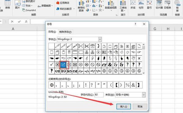 在Excel表格中出现的方框里打勾的方法如下: